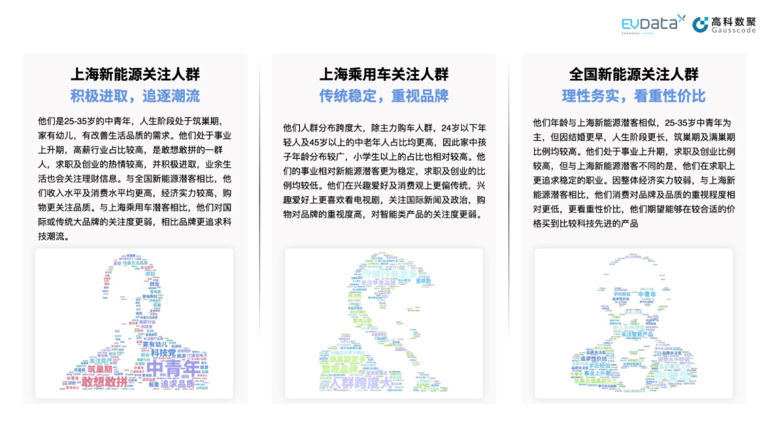 这部分,人群将被划分为三种不同类型,包括上海新能源关注人群、上海乘用车关注人群和全国新能源关注人群[5]分析这些关注人群的类型和偏好,将帮助企业更好地满足消费者需求,服务现有车主,转化潜在消费者。